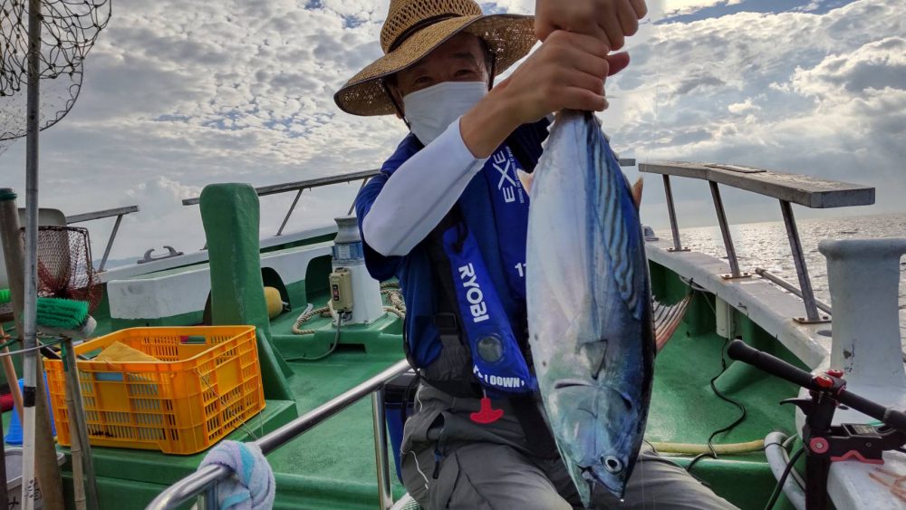 せっかくかかったスマカツオを船べりでバラシてしまったお客様はまた来週引き取りに来て下さるそうです(笑