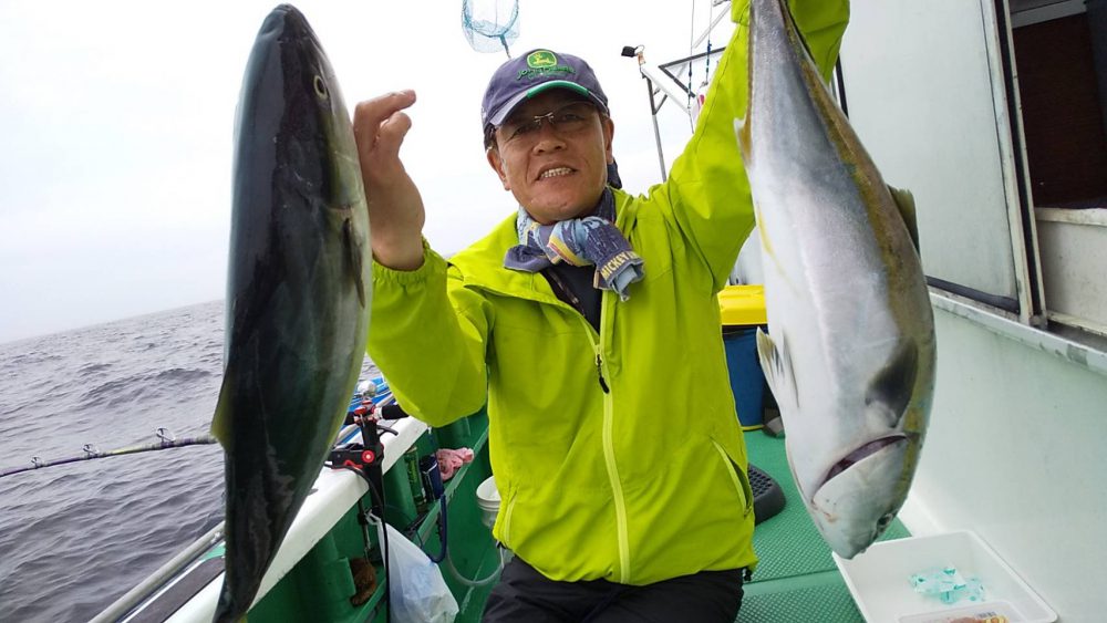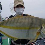 昨日に続き今日も梅雨の中休み。昨日はシケでしたが今日は凪て定刻に出船!シケ後潮が変わり今日は当たり多数と好感触♪待望のシマアジも上がりました!しかも4kオーバーと今までよりサイズもアップ!そうかと思えば一人で4回ばらしたとおっしゃるお客様も (^-^;