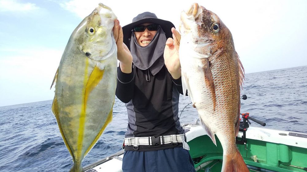 シマアジ 2.2~4.6k 0~1尾マダイ 0.8~2.8k 0~2尾ワラサ 2.8~3.8k 0~3尾カンパチ 1.5kバラシ多数